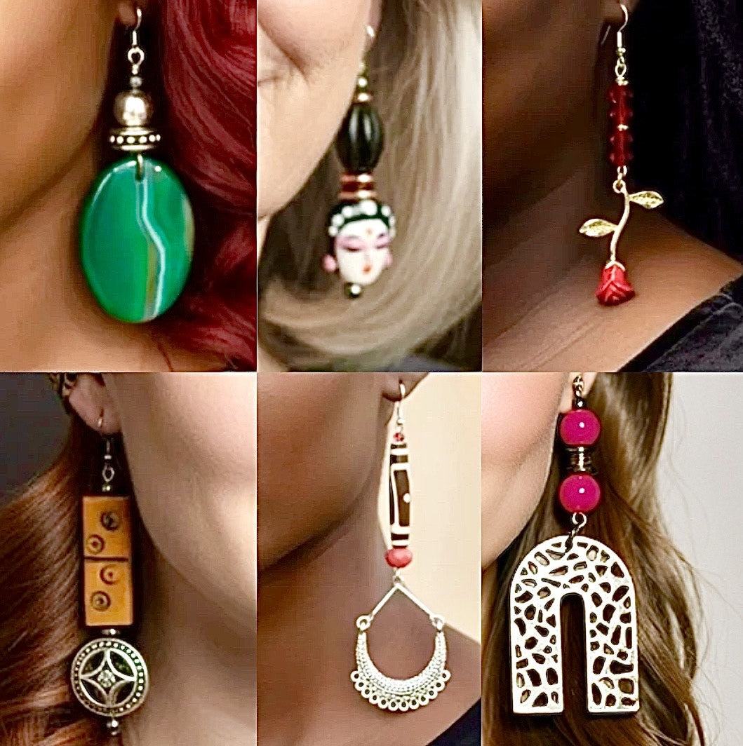 SPOTLIGHTED DESIGN Bohemian Statement Drops: Bold earrings featuring etched, antique brass rings, complemented by vibrant red beads and glossy red chain links